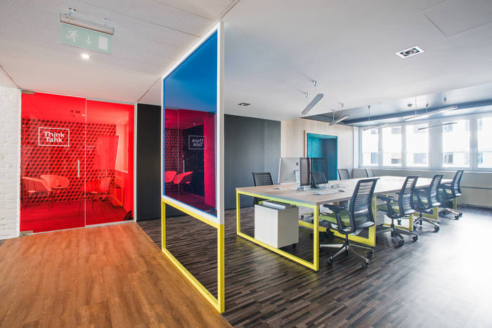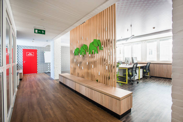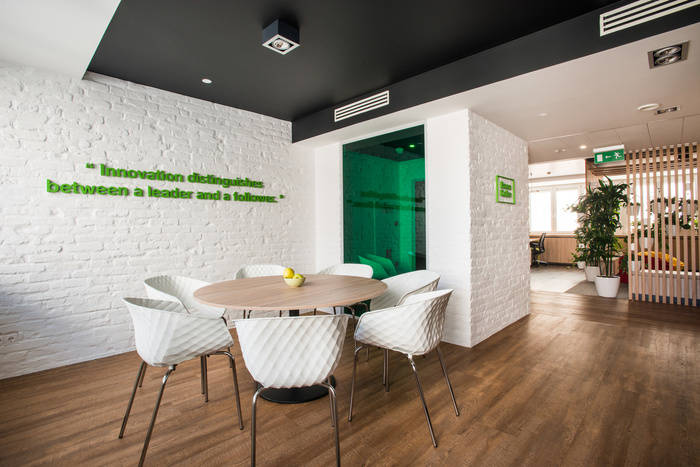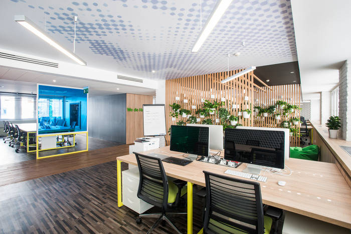 许多木质表面——地板、隔板和家具,以及深色油漆表面被用来在某些区域创造温暖舒适的氛围。到处都有许多不同类型的座位,为人们提供各种选择,为他们找到最好的地方。办公室内安装了100多种植物,以产生美丽、生动和巨大的绿色表面,这在日常城市生活中是维持我们平衡的必要条件。此外,办公室两端的3D图案瓷砖反射在色彩鲜艳、开放空间和绿色表面的大型彩色玻璃表面上。这就是现代办公室的愿景,即“成人游乐场”。#济南办公室华球手机版app#